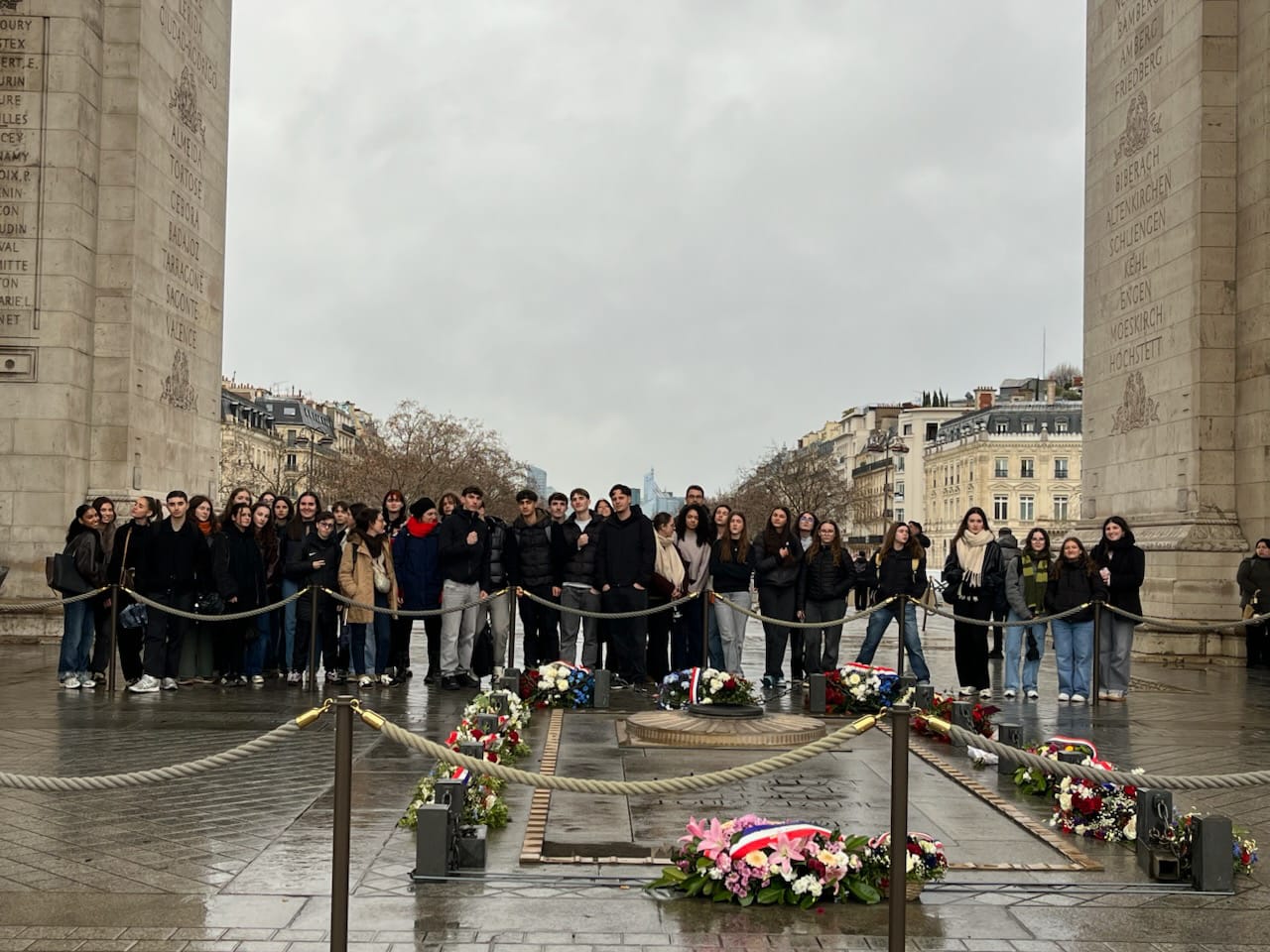 Les élèves du lycée Clément Marot devant la tombe du soldat inconnu le 27 janvier 2026